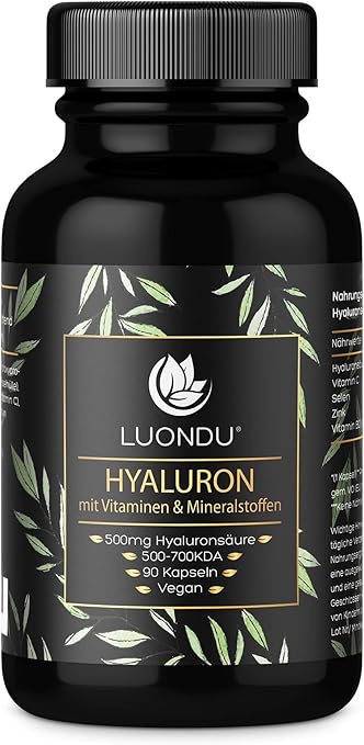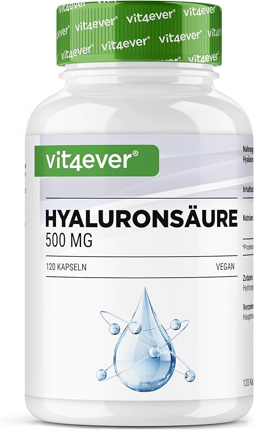 - Hohe Hyaluronsäure-Dosierung: 500mg pro Kapsel